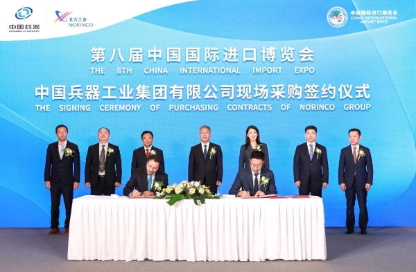 11月6日上午,中國兵器工業(yè)集團有限公司在上海隆重舉辦第八屆中國國際進口博覽會專場采購簽約儀式。兵器工業(yè)集團黨組成員、副總經(jīng)理史志榮出席會議并致辭,國家主管部門有關司局領導,集團公司總部相關部門、相關子集團和直管單位負責人以及各國業(yè)務合作伙伴企業(yè)代表共150余人出席簽約儀式。